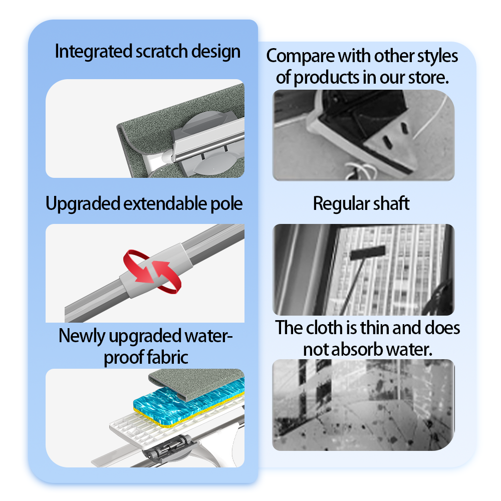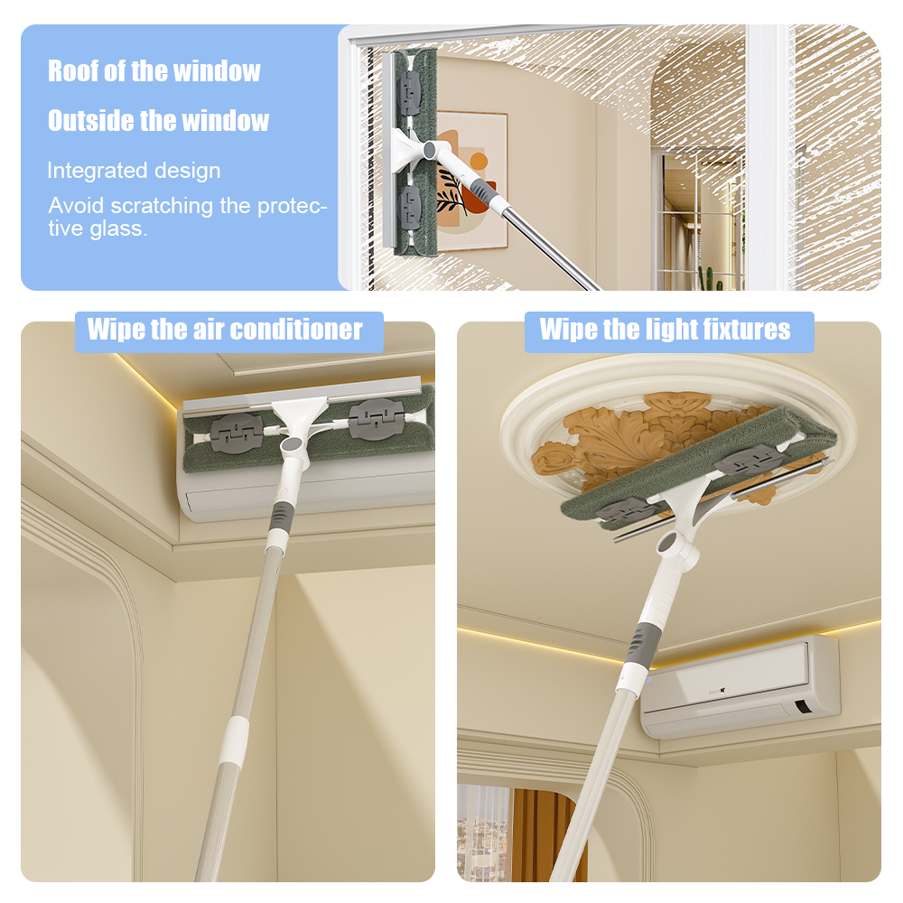 1.9M Disposable Telescopic Long Handle Window Mop Wiper Stainless Steel Scraper Mirror Multi-Functional Car Glass Wiper