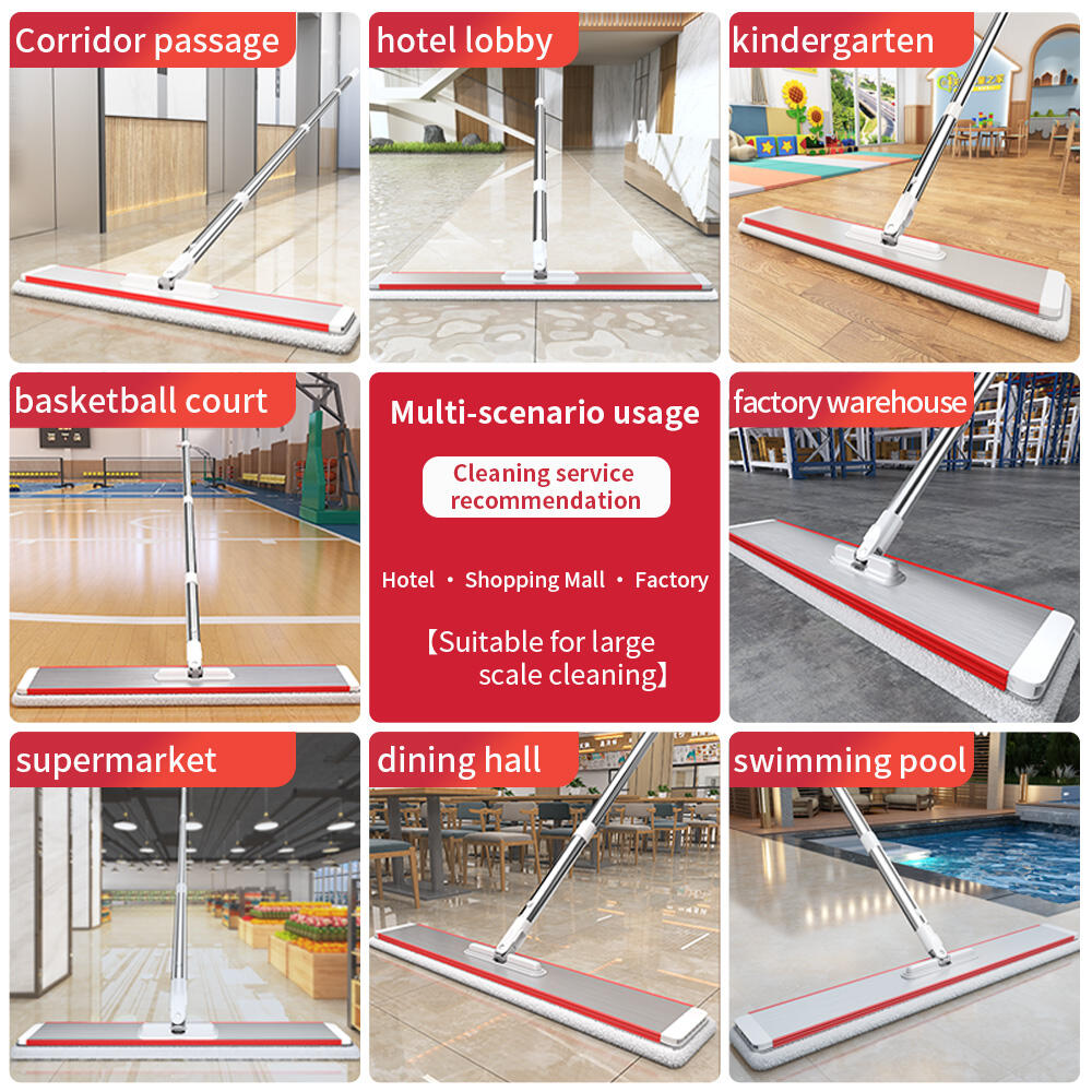 Aluminum alloy flat mop is suitable for various hard floors, including wooden floors, tile floors, marble floors, etc., but it is not recommended for cleaning glazed tiles or carpets without anti slip treatment