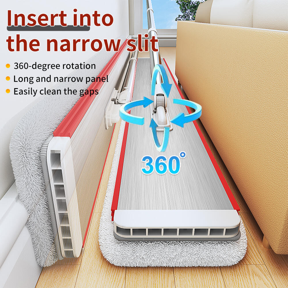Flexible operation: The 360 ° flexible rotating mop head design allows for easy penetration into corners such as the bottom and corners of furniture, achieving clean cleaning without blind spots