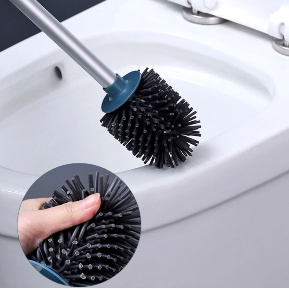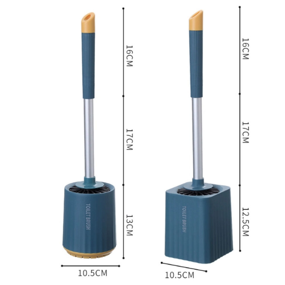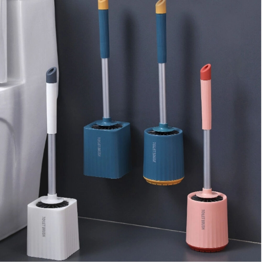 Long-Handle Metal Rod Silicone Head Square Circular Bathroom Toilet Cleaning Brush Bracket Set Standing Rubber Cleaning Brush