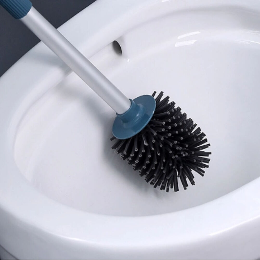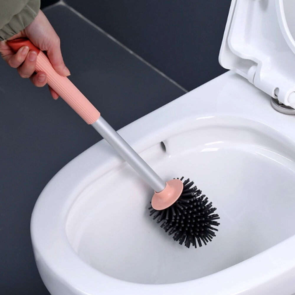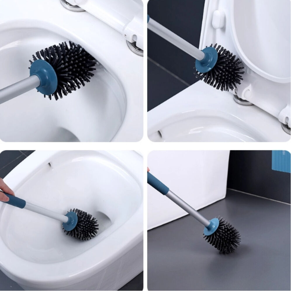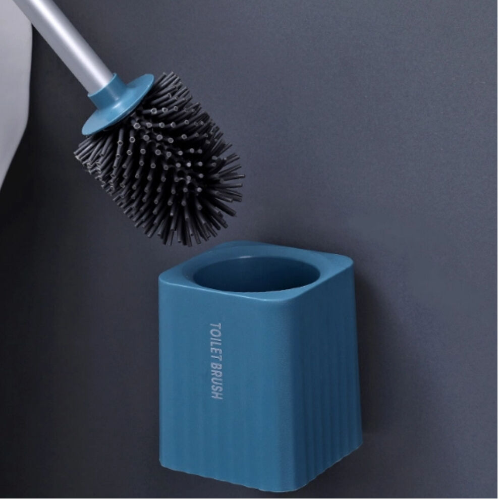 Long-Handle Metal Rod Silicone Head Square Circular Bathroom Toilet Cleaning Brush Bracket Set Standing Rubber Cleaning Brush