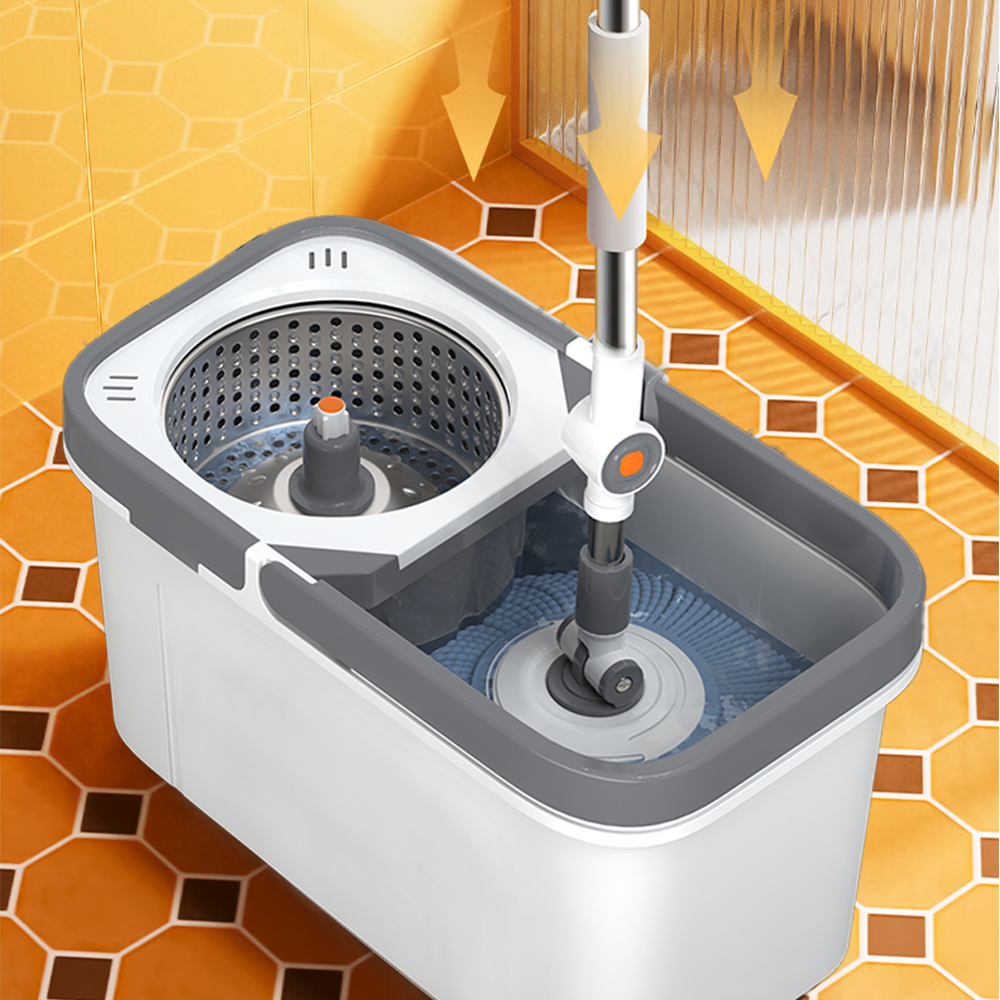 Lovfe Bestseller 360 Degree Design Stainless Steel Floor Cleaning Mop Bucket Set with 2 Microfiber Heads for House Cleaning