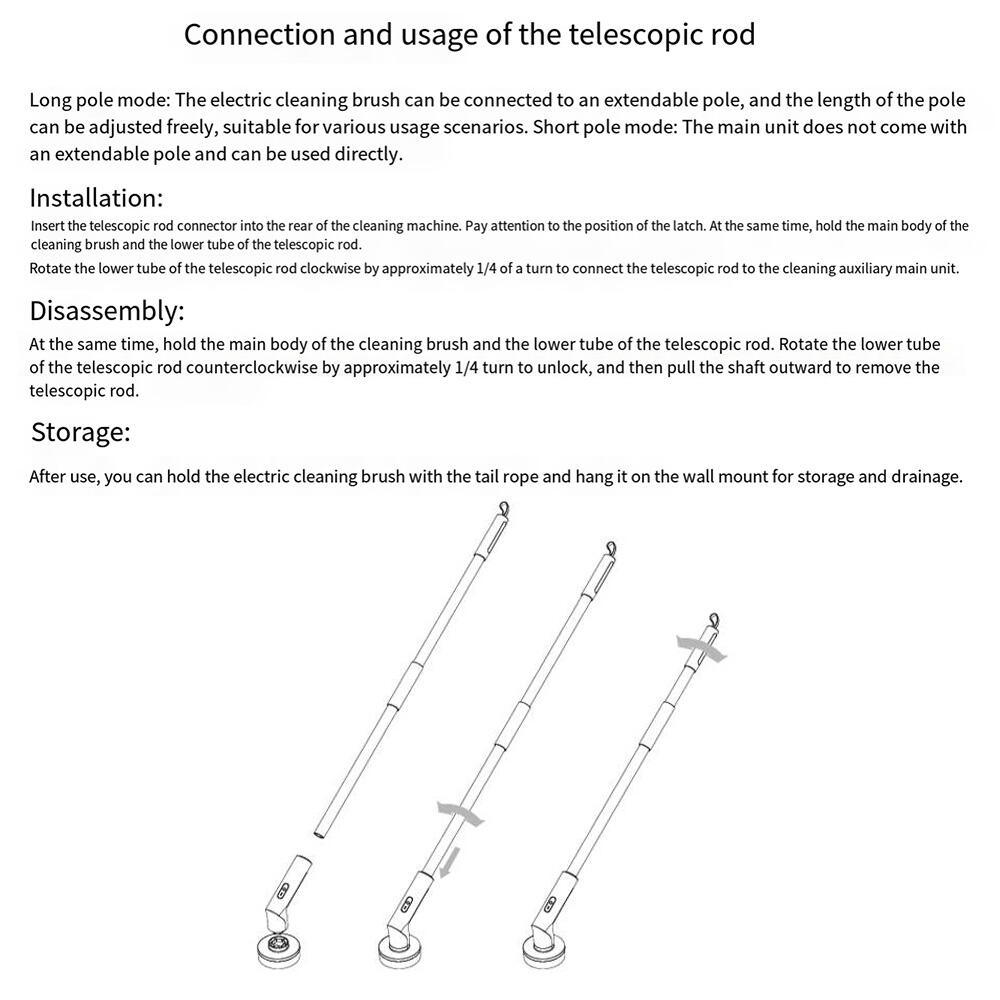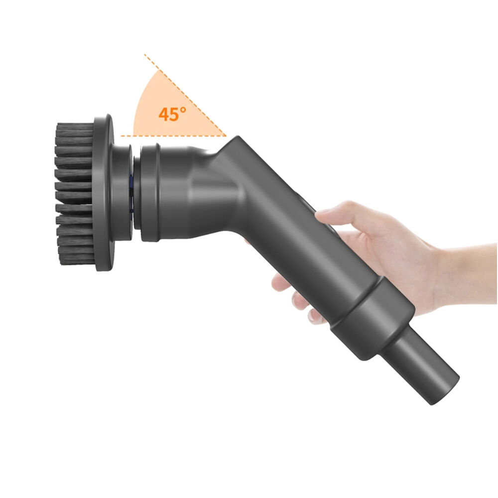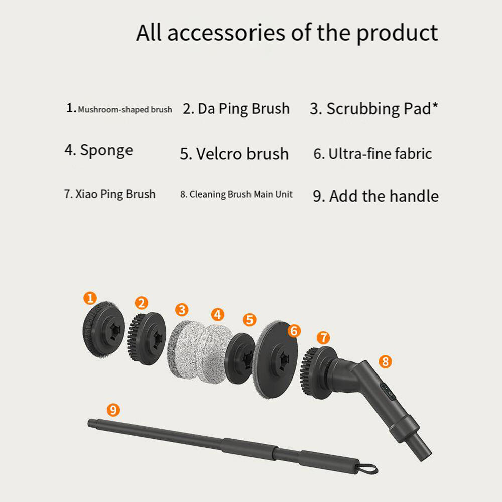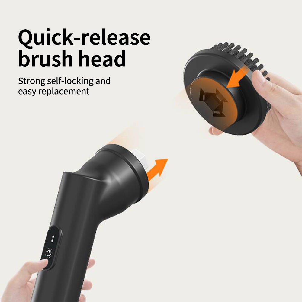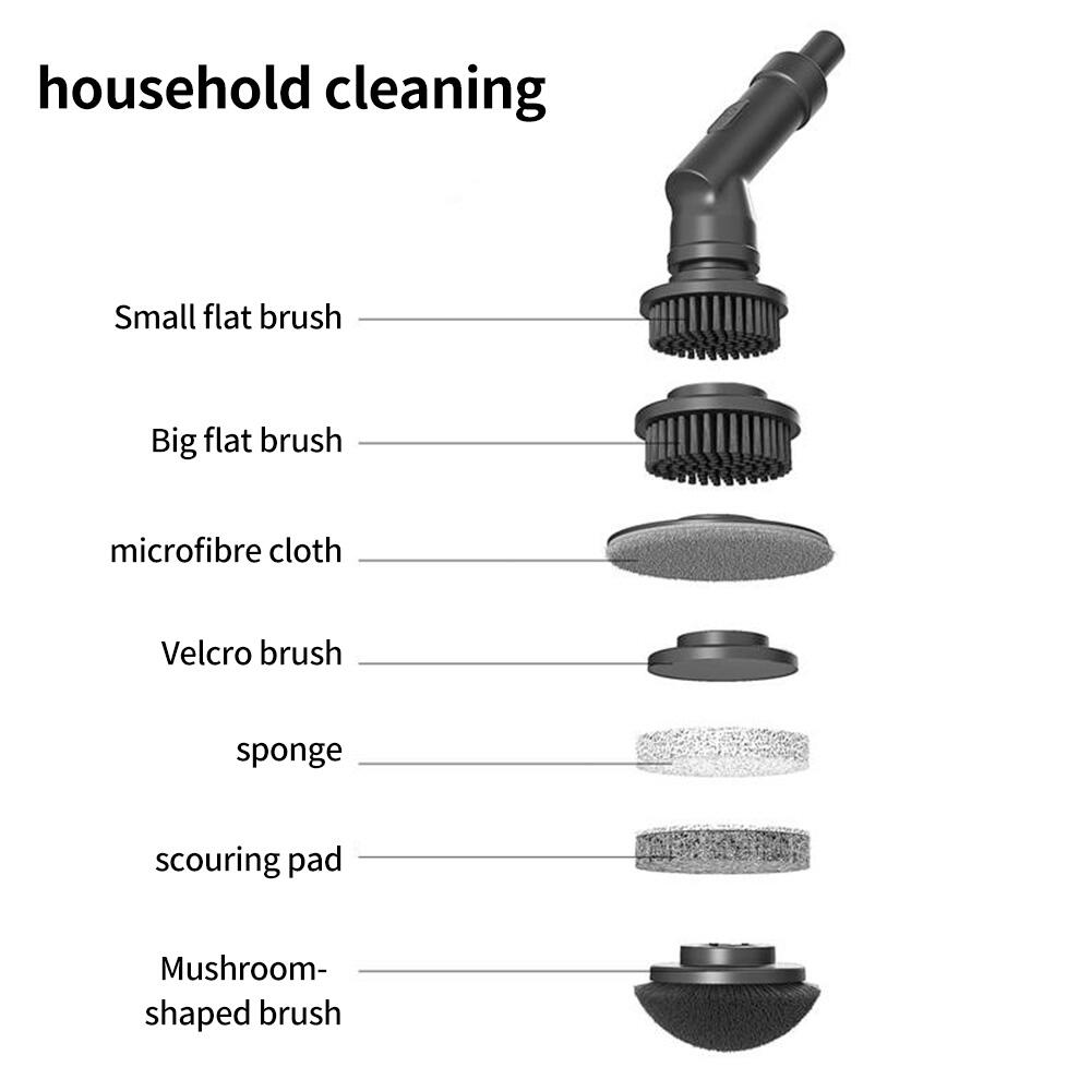 This electric cleaning brush is equipped with a brush head for replacement, which is made of different materials and suitable for different scenarios and functions, meeting the daily household cleaning requirements. It can deeply clean different areas such as kitchens, floors, windows, walls, sinks, mirrors, desktops, bathtubs, etc. The handle adopts a 45 degree tilt angle, which conforms to ergonomics. Even if used for a long time, it will not feel tired, and the angle can completely remove dirt. The rotating brush head leaves no hygiene dead corners. It adopts a battery charging style, cordless design, convenient to use, and the battery adopts a 2000mAh large capacity, super endurance, and durable electricity, making it a good helper for household cleaning
