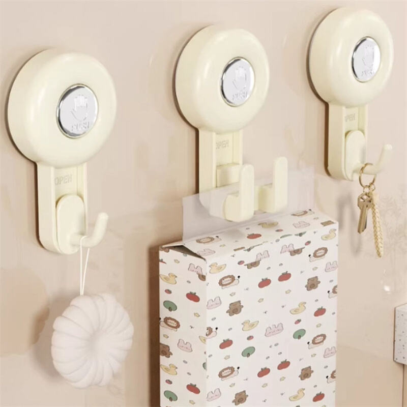 Denna uppsugningshållare har en triangulär design som anpassar sig tätt till väggens hörn och integreras med hörnutrymmet, vilket gör att hörnutrymmet utnyttjas fullt ut för förvaring och ordning. Uppsugningshållaren är gjord av ABS-material, vilket är rostfritt och har en slät yta. Den är vakuumkomprimerad och har hög bärförmåga, kapabel att bära upp till 15 kg. Den ihåliga designen filtrerar effektivt vattenfläckar och håller förvaringshållaren torr. I botten finns en krokdesign, som kan användas för att hänga handdukar och andra föremål, och är multifunktionell.