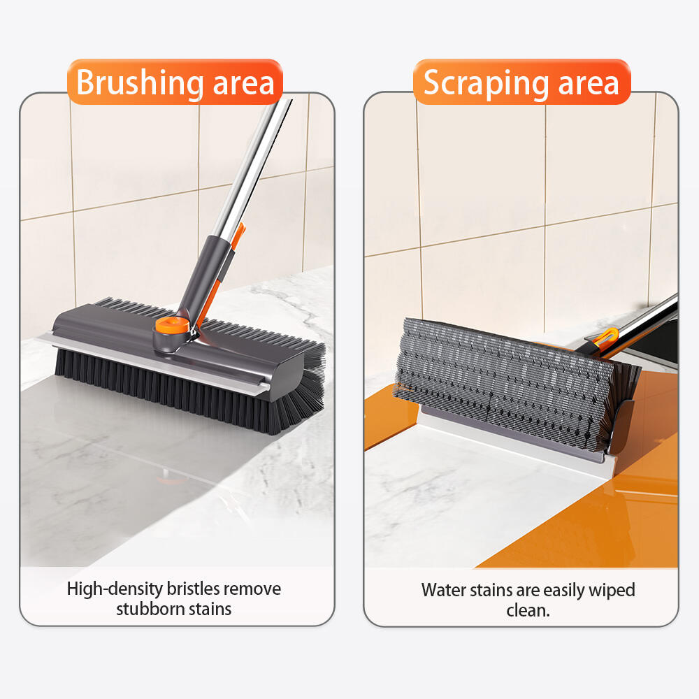 Wholesale 2-in-1 Floor Cleaning Brush Floor Tile Spin Scrubbing Brush Head Silicone Scraper Gap Brush Magic Scraper Broom
